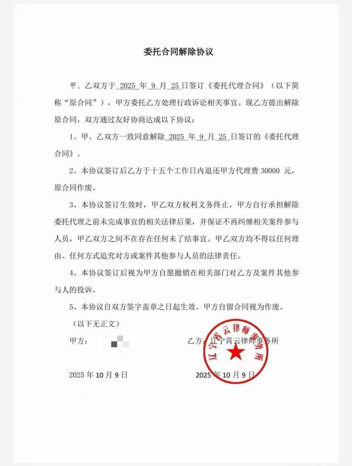 委托合同解除协议(来源:受访者)举报/反馈